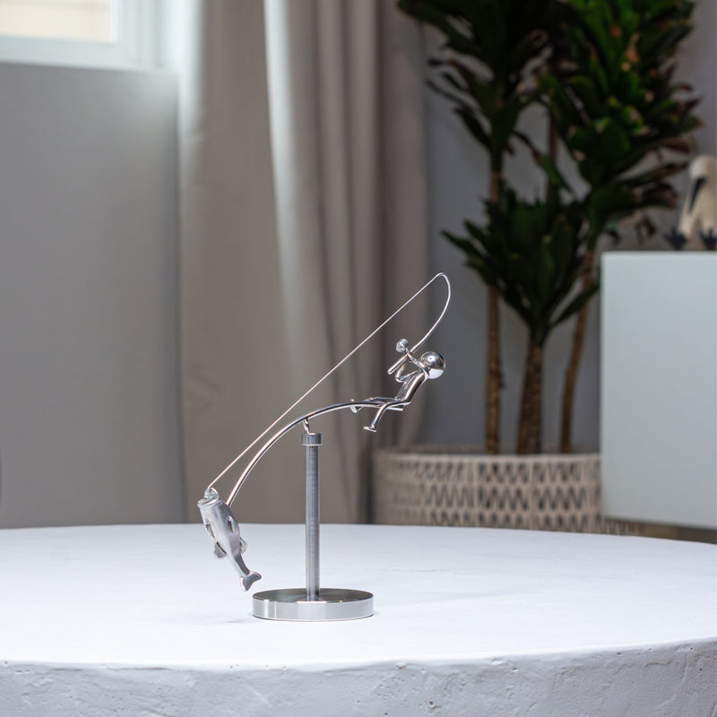 This ornament is made of exquisite metal craftsmanship. The figure and the fish are cleverly balanced at both ends of the fishing rod. After a light touch, it will begin to swing gracefully and rhythmically, as if an angler is concentrating on enjoying the moment when the fish is hooked. Its dynamic beauty and balance principle are not only an excellent desktop decoration, but also a work of art full of philosophy and fun. Whether it is placed in the study, office, living room, or as a unique gift, it can instantly enhance the style of the space and bring a different kind of fun and tranquility to your life.