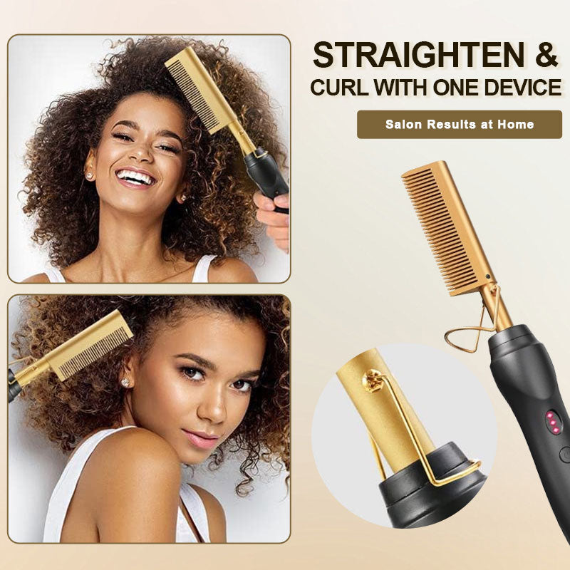 ✨ 2-in-1 Hair Styling Hot Comb – Straighten & Curl with One Tool