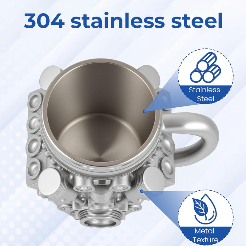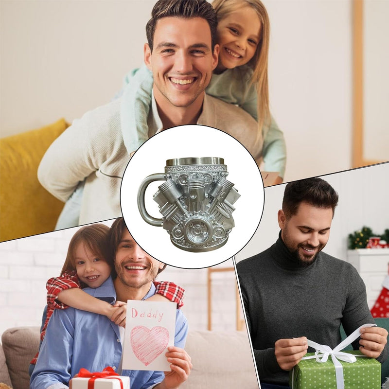 Turn your coffee break into a conversation topic. This mug is designed like a classic V8 engine with detailed pistons, valves, and engine block – an iconic design for anyone who loves cars, workshop atmosphere, and industrial aesthetics.